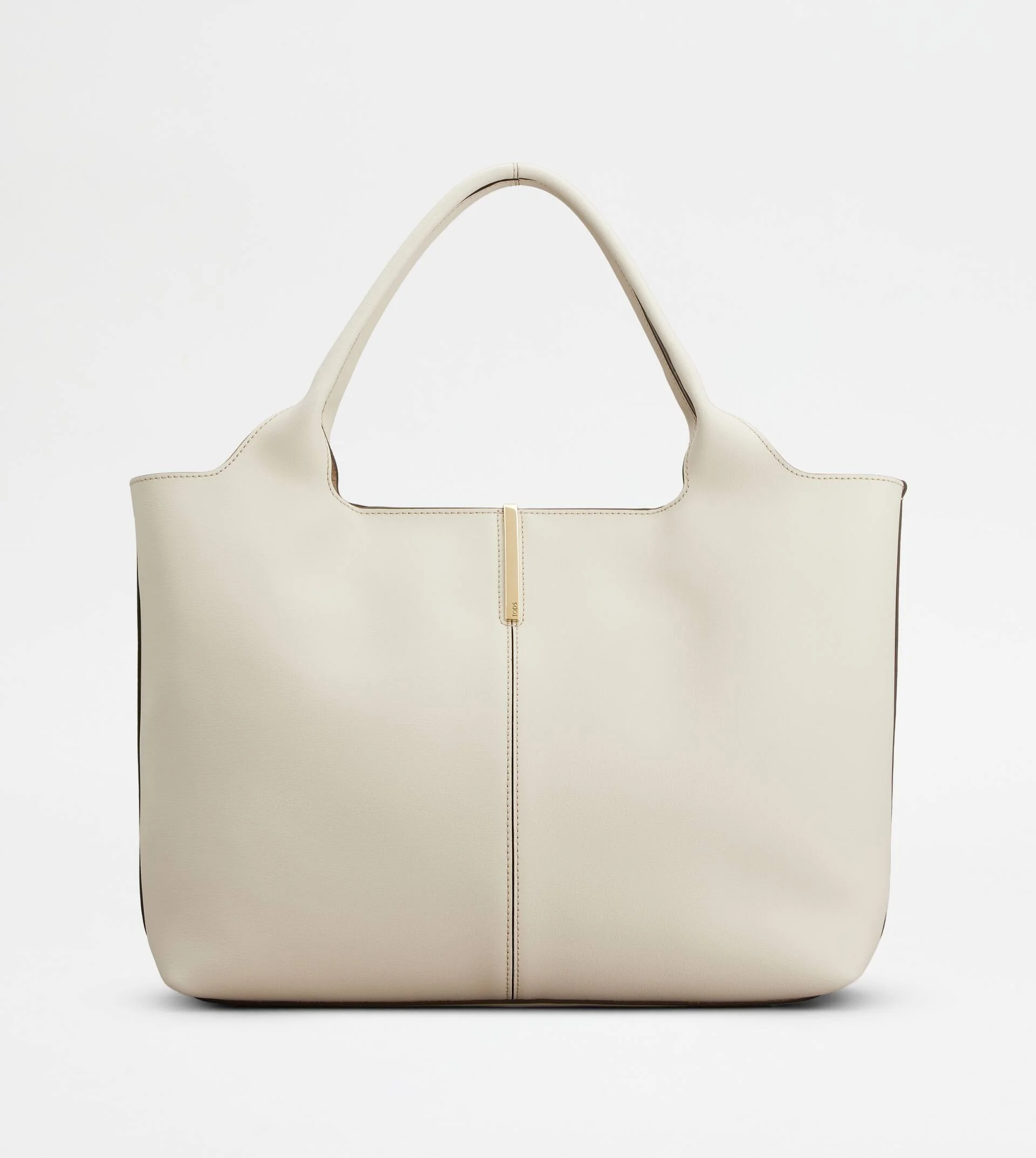 Essential design, lightness and practicality are combined in this shopping bag with a contemporary mood. Crafted in calfskin leather, it features a central stitching emphasized by the branded metal bar accessory. Closed with a magnet, it is perfect for the everyday urban look. - Dimensions: L 16.5 ins x H 10.6 ins x D 5.1 ins - Handles: height (drop) 7.1 ins - Made in Italy - Tod's shopping bag - Item crafted in calfskin leather - Branded metal bar accessory on the front - Magnet closure - Branded metal feet - Maintenance and care cards included - Branded dustbag