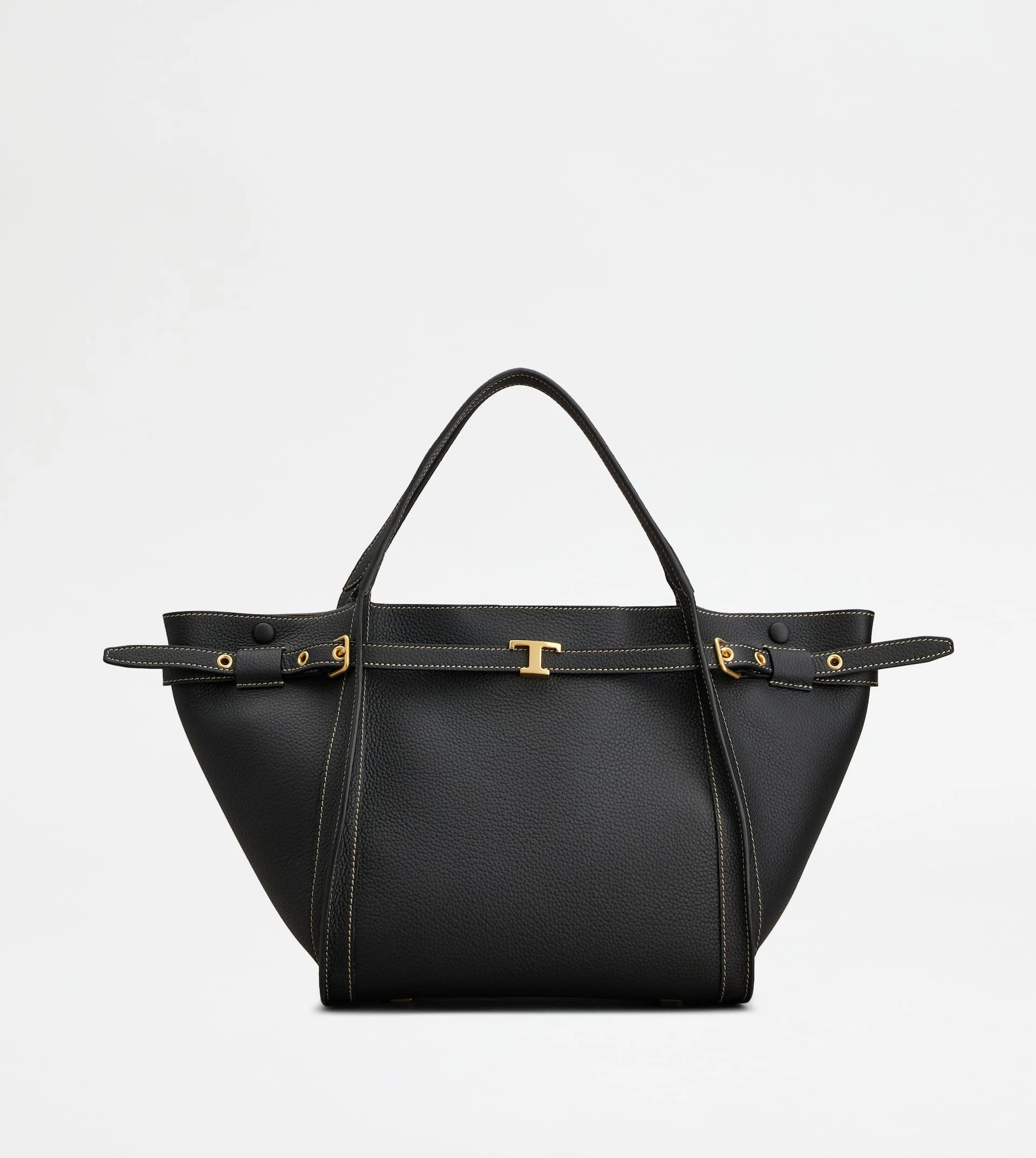 SHOPPING BAG IN LEATHER SMALL - BLACK