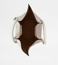 A combination of contemporary design and traditional craftsmanship, this medium shopping bag is crafted in calfskin nappa leather, with a handwoven corn leaf base. Featuring long handles secured with the distinctive stitching, it features Tod's logo stamped on the front and the T Timeless pendant. Practical and lightweight, it is perfect in the city as well as on vacation thanks to its ambivalent mood. - Dimensions: L 16.9 ins x H 12.2 ins x D 6.1 ins - Handles: height (drop) 10.6 ins - Made in Italy - Summer shopping bag - Item crafted in calfskin leather - Bottom in straw (corn leaves) - Removable T Timeless pendant in metal and leather - Tod's logo stamped on the front - Magnet closure - Maintenance and care cards included - Branded dustbag