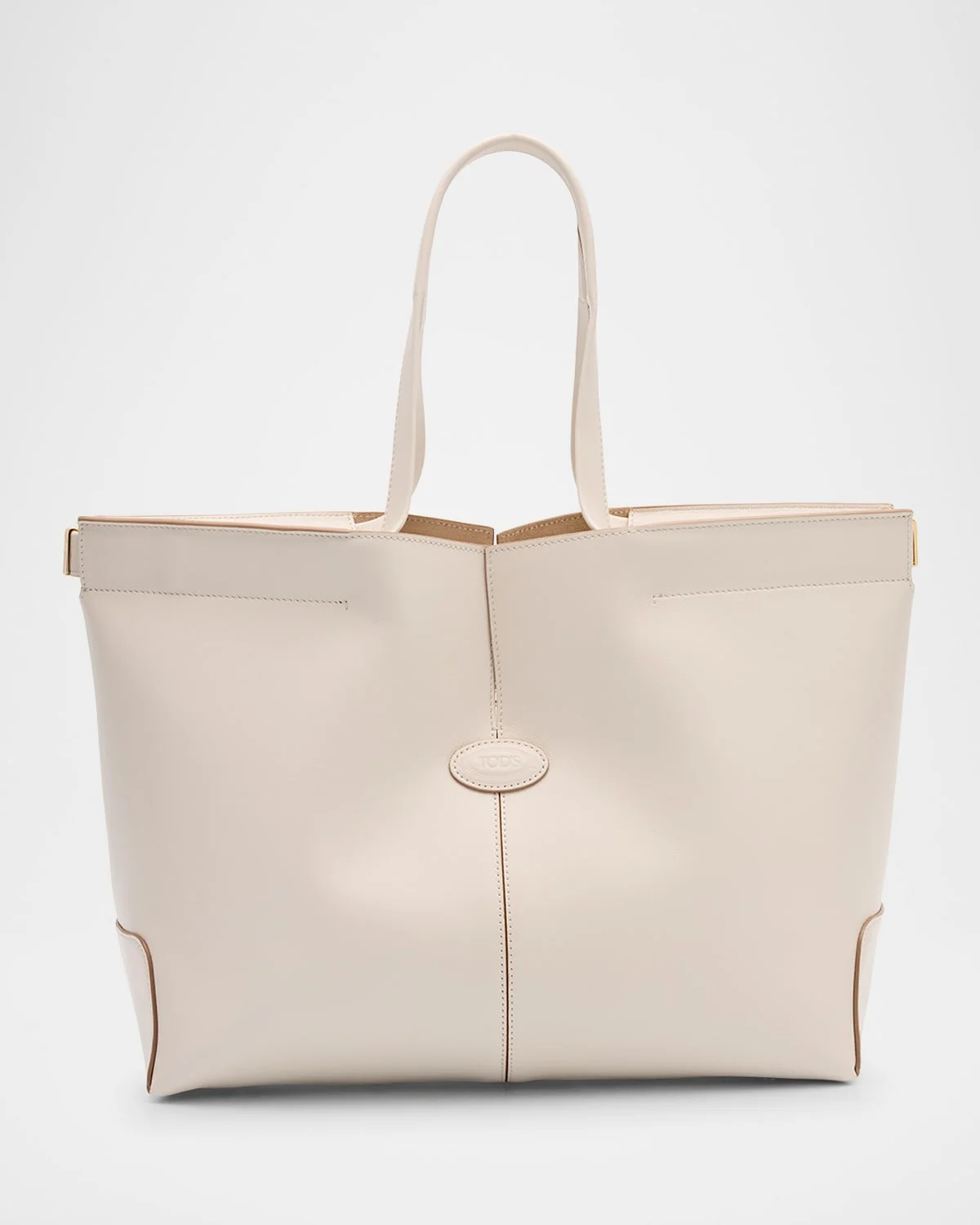 - Tod's shopping tote bag in calf leather - Shoulder straps - Open top with hinge and center snap strap closures - Feet protect bottom of bag - Approx. 10.2"H x 16.1"W x 5.9"D - Made in Italy
