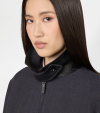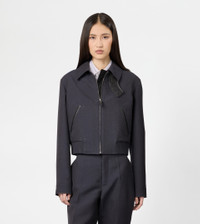 SHORT BOMBER JACKET IN WOOL GABARDINE - BLUE