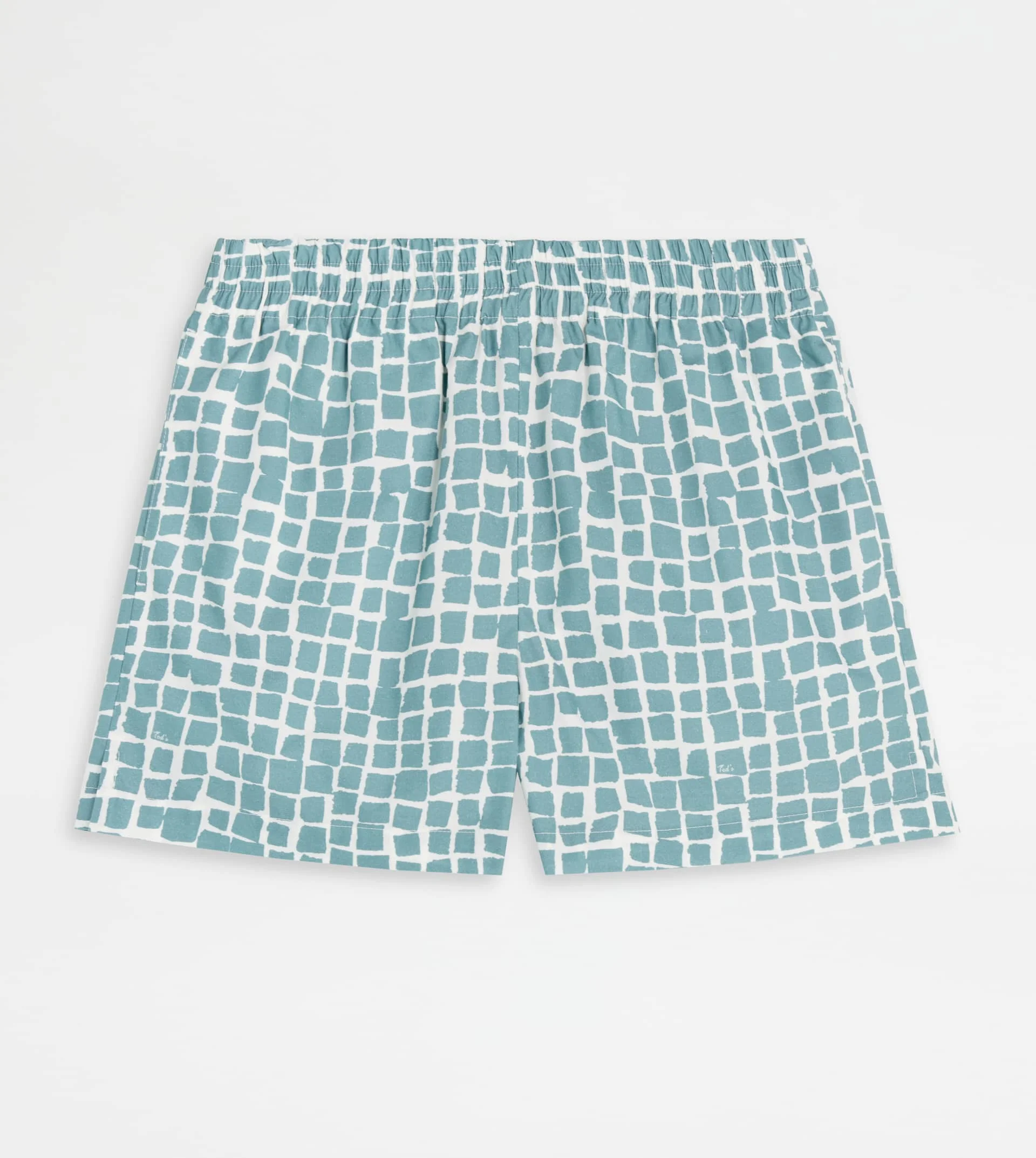 Characterized by an exclusive branded print, these shorts in poplin comes with two side pockets, one back pocket with a flap and hand-embroidered Tod's monogram. Featuring an elastic waistband, they are a pull-on model with an easy yet refined style. - Made in Italy - Shorts in cotton - Fitting: regular - The model is 5' 9'' and wears size 38 (IT) - Item composition: 100% cotton - Maintenance and care cards included