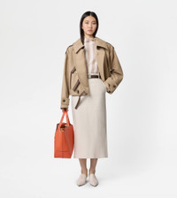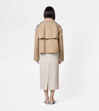 SHORT TRENCH COAT WITH LEATHER INSERTS