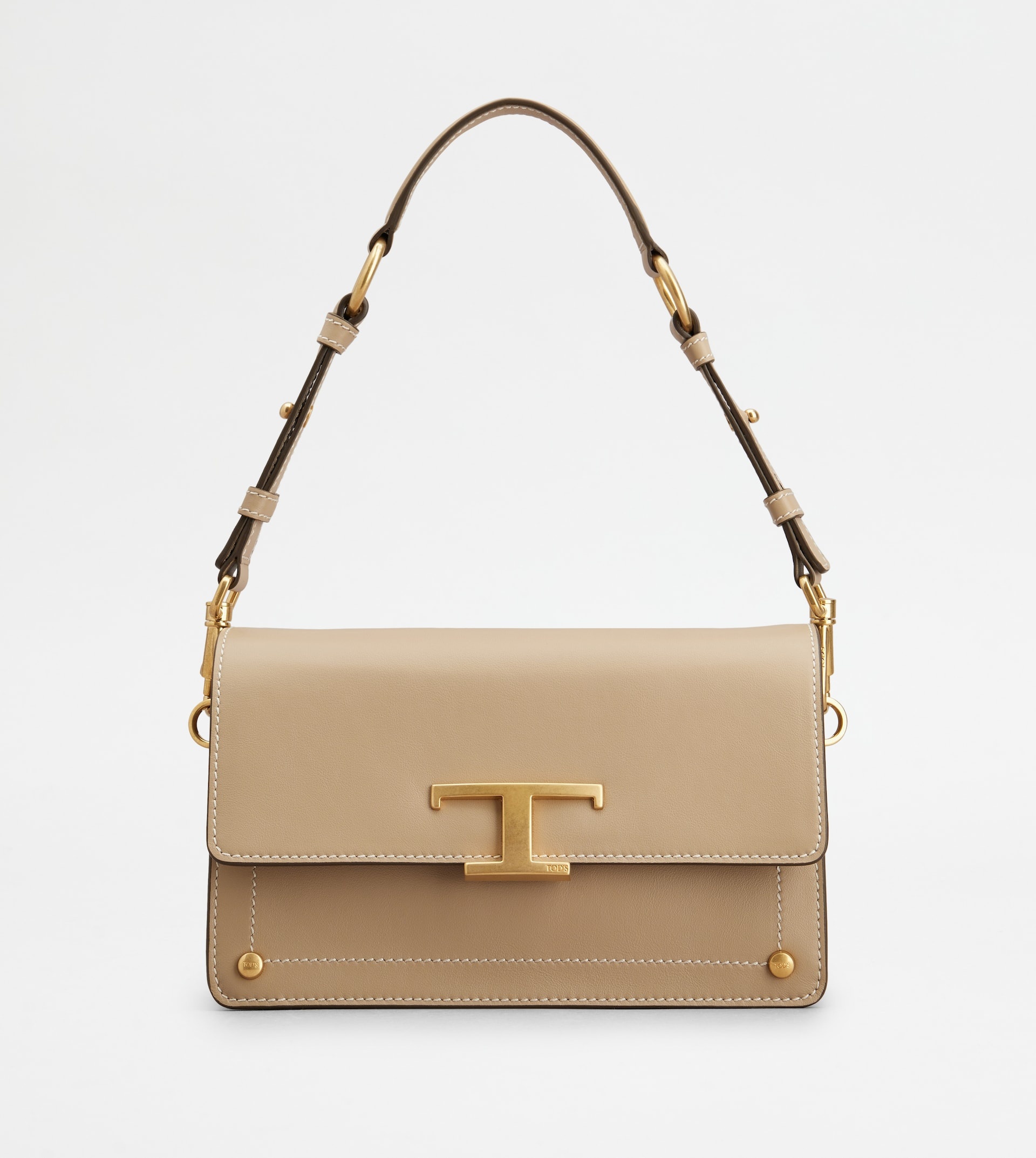 Bag in elegant leather with a Tod's T Timeless metal accessory, branded rivets, and an adjustable and removable handle. - Dimensions: 9.3 x 5.7 x 4.3 ins - Adjustable and removable shoulder handle, 7.9 ins drop approx - Made in Italy - Women's Tod's Bag - Item crafted in leather - Branded metallic rivets - Tod's T Timeless metal branded accessory - 2 internal compartments - Internal pocket - Maintenance and care cards included - Branded dustbag