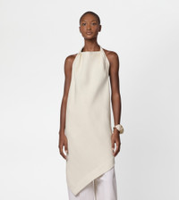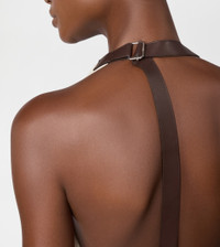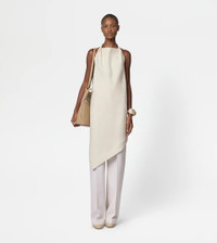 Crafted from a single cut of striped jacquard fabric, this long top is characterized by a draped front and asymmetrical bottom. The back, that leaves the back uncovered, comes with an adjustable leather strap at the neck. - Made in Italy - Long top - Fitting: regular - The model is 5' 9'' and wears size S (IT) - Item composition: 73% viscose, 27% silk, ovine leather insert - Maintenance and care cards included