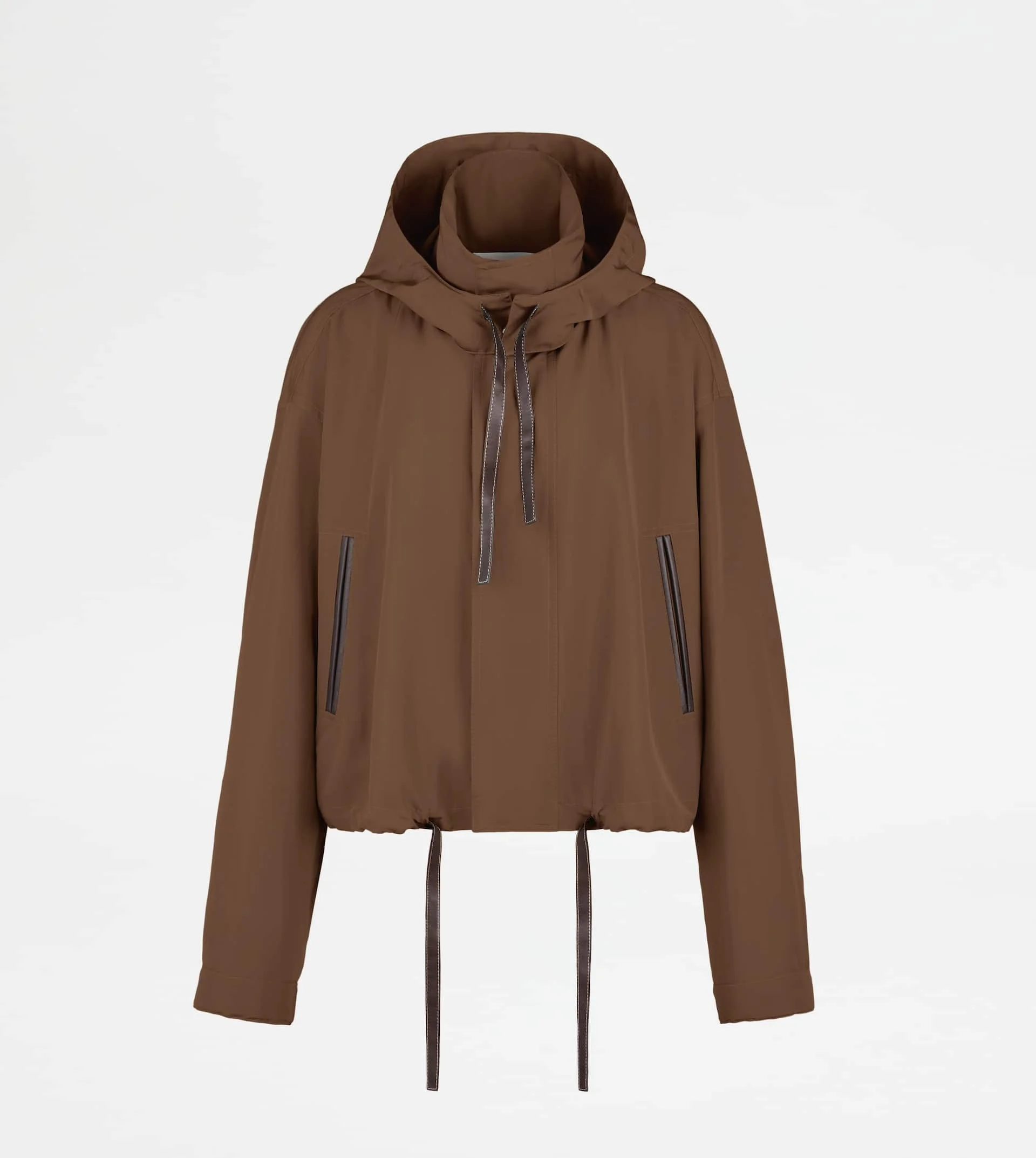 SILK BLEND SHORT WINDBREAKER - BROWN