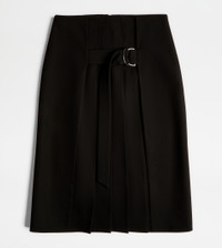 Skirt in wool characterized by front pleats. Featuring a metal ring adjustable strap, it comes with an invisible zip and hook fastening on the back. A versatile and timeless feminine wardrobe must-have. - Made in Italy - Women's Tod's skirt in wool - The model is 180 cm and wears size 40 (IT) - Item composition: 100% virgin wool - Maintenance and care cards included