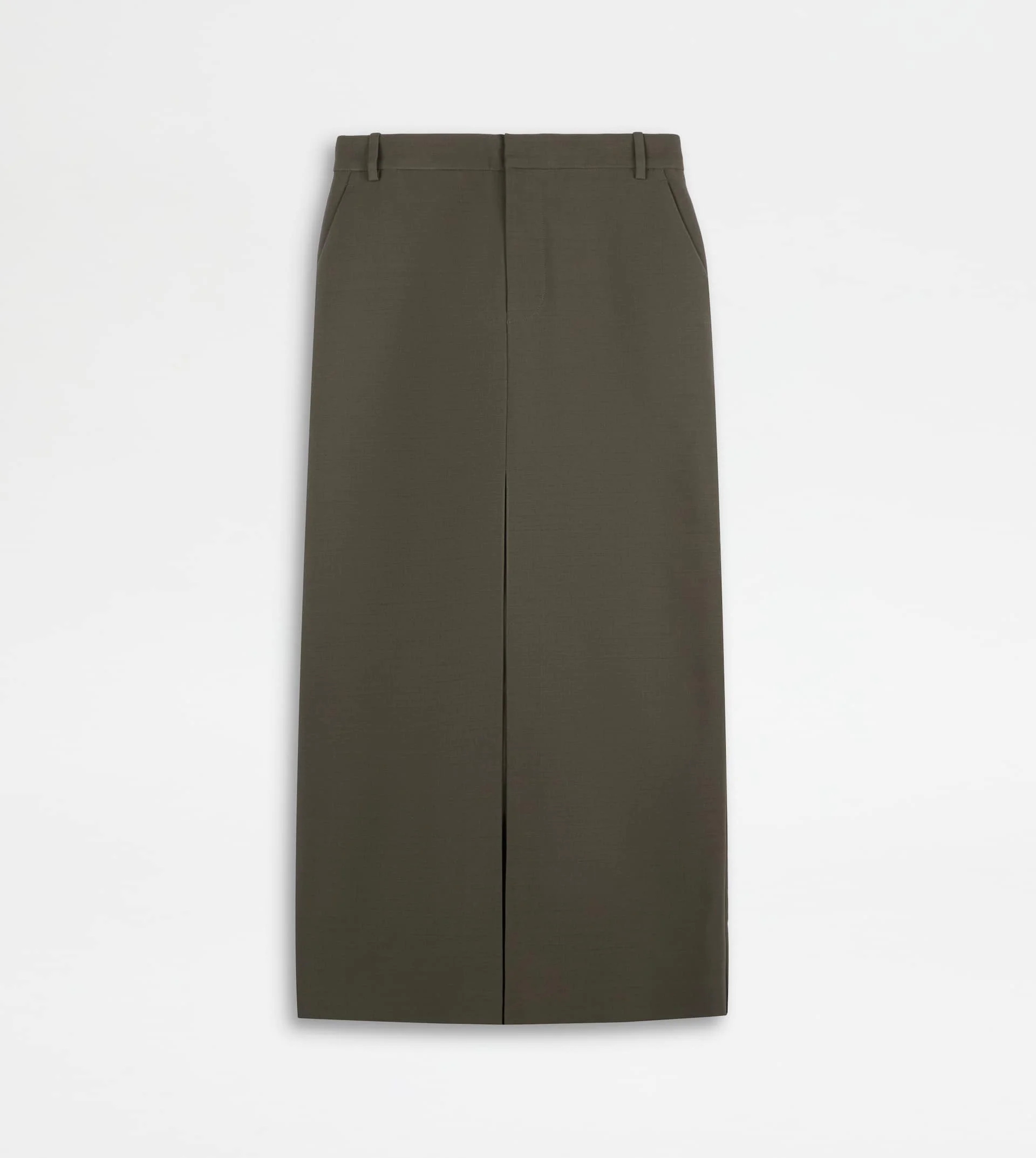 Skirt in wool with wide slit on the front. Featuring slanted front pockets, it comes with one welt back pocket with button and one with the Tod's monogram embroidered on the flap. - Made in Italy - Skirt in wool - Fitting: regular - The model is 5' 9'' and wears size 38 (IT) - Item composition: 100% virgin wool - Maintenance and care cards included