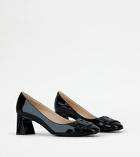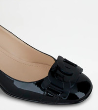 Pumps in elegant patent leather with branded chain accessory, a structured heel and a leather outsole with rubber injection. - Made in Italy - Women's Tod's Slide Pumps - Patent leather upper - Patent leather chain accessory - Leather covered heel with rubber insert, 6 cm - Rubber outsole with rubber injection - Maintenance and care cards included - Branded dustbag