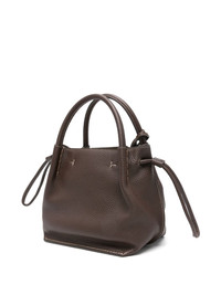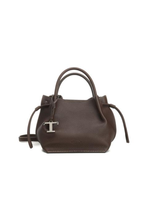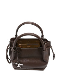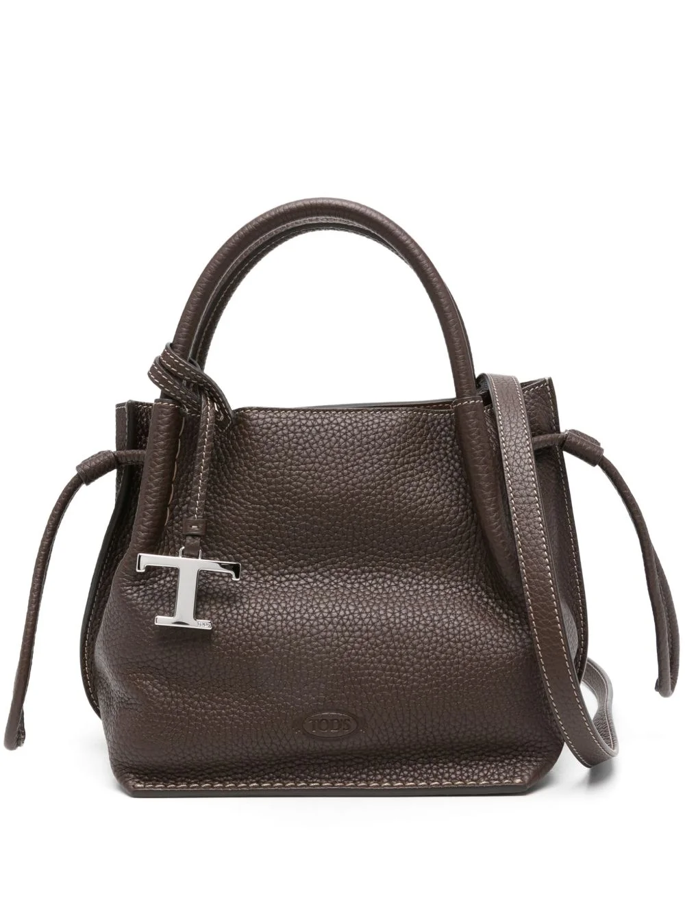 small Buz leather tote bag Highlights - Brown - Pebble texture - Top handles - Drawstring closure - T-logo charm - Contrast stitching Made in Italy Composition Outer: Leather 100% SIZE & FIT Model measurements Height 5 ft 11 in(1.8 m) Bust/Chest 31.49 in(80 cm) Hips 36.61 in(93 cm) Waist 24.4 in(62 cm) Measurement DEPTH 7.08 in(18 cm) HEIGHT 7.67 in(19.5 cm) WIDTH 10.62 in(27 cm)