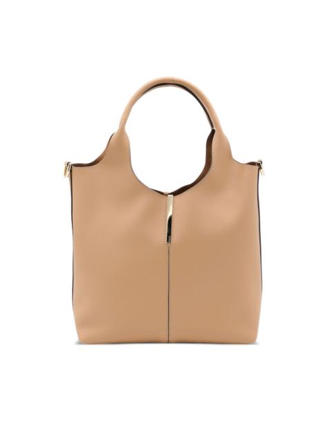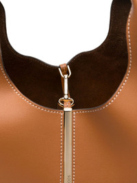 leather tote bag Highlights - Ochre brown - Lobster claw fastening - Two rolled top handles - Adjustable shoulder strap - Metal feet Imported Composition Outer: Calf Leather 100% SIZE & FIT Model measurements Height 5 ft 10 in(1.78 m) Bust/Chest 33.85 in(86 cm) Hips 36.61 in(93 cm) Waist 26.77 in(68 cm) Measurement DEPTH 5.11 in(13 cm) HANDLE 6.29 in(16 cm) HEIGHT 8.26 in(21 cm) WIDTH 10.23 in(26 cm)