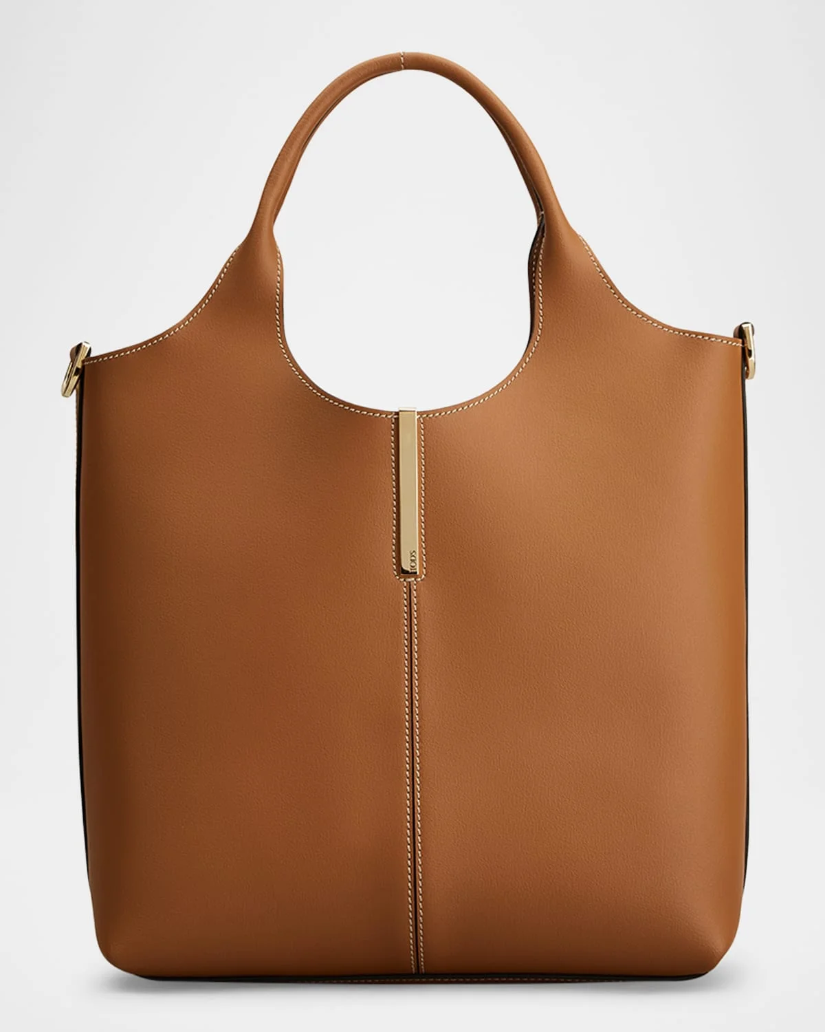 - Tod's north-south top handle bag in leather - Top handles - Removable, adjustable crossbody strap - Can be worn as a top handle or crossbody bag - Open top with hook strap closure - Feet protect bottom of bag - Approx. 10.6"H x 11.8"W x 5.9"D - Made in Italy