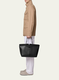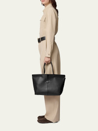 Tod's shopper tote bag in smooth calfskin leather, designed with the iconic central stitching, oval logo, an elegant slit, and a spacious interior Flat top handles, 6.7" drop Open top with internal snap strap closure Interior, removable zip-top pouch Feet protect the bottom of the bag Approx. 10.2"H x 16.1"W x 5.9"D Made in Italy Online Inquiries: BGS21_V6LV3| Store Inquiries: #5050052