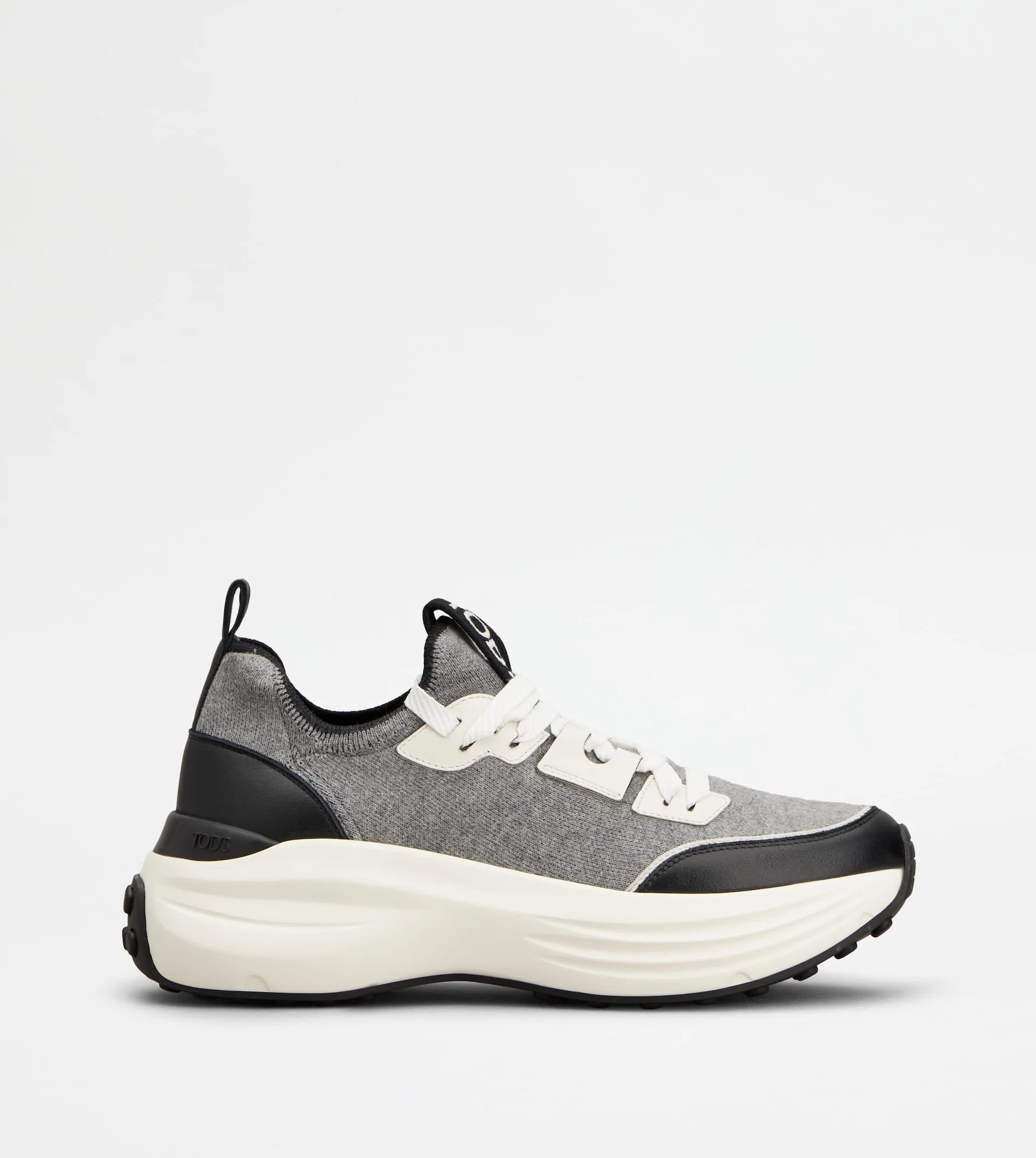 Crafted in stretch knit with leather inserts, these sneakers combine comfort and sophisticated detailing. The upper features Tod's logo embroidered on the tongue. The chunky outsole comes with iconic embossed detailing. A true urban look must-have, perfect from the office to the weekend. - Made in Italy - Women's sneakers - Stretch fabric upper - Calfskin leather inserts - Tod's logo embroidered on the tongue - Rubber outsole with embossed detailing - Maintenance and care cards included - Branded dustbag