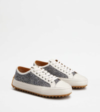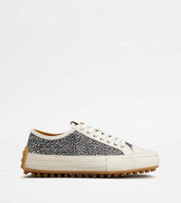 Characterized by a rubber outsole with the distinctive embossed rubber pebbles as on the heel, these sneakers feature an upper inspired by vintage basketball shoes. Crafted in tweed fabric and leather, with Tod's logo stamped on the tongue, they interpret a sporty and sophisticated taste. - Made in Italy - Tod's Sneakers - Fabric upper - Calfskin leather inserts - Tod's logo stamped on the tongue - Leather lining and insole - Rubber outsole with embossed rubber pebbles - Maintenance and care cards included - Branded dustbag - Additional laces included