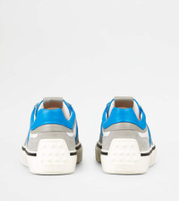 SNEAKERS IN LEATHER - GREY, WHITE, LIGHT BLUE