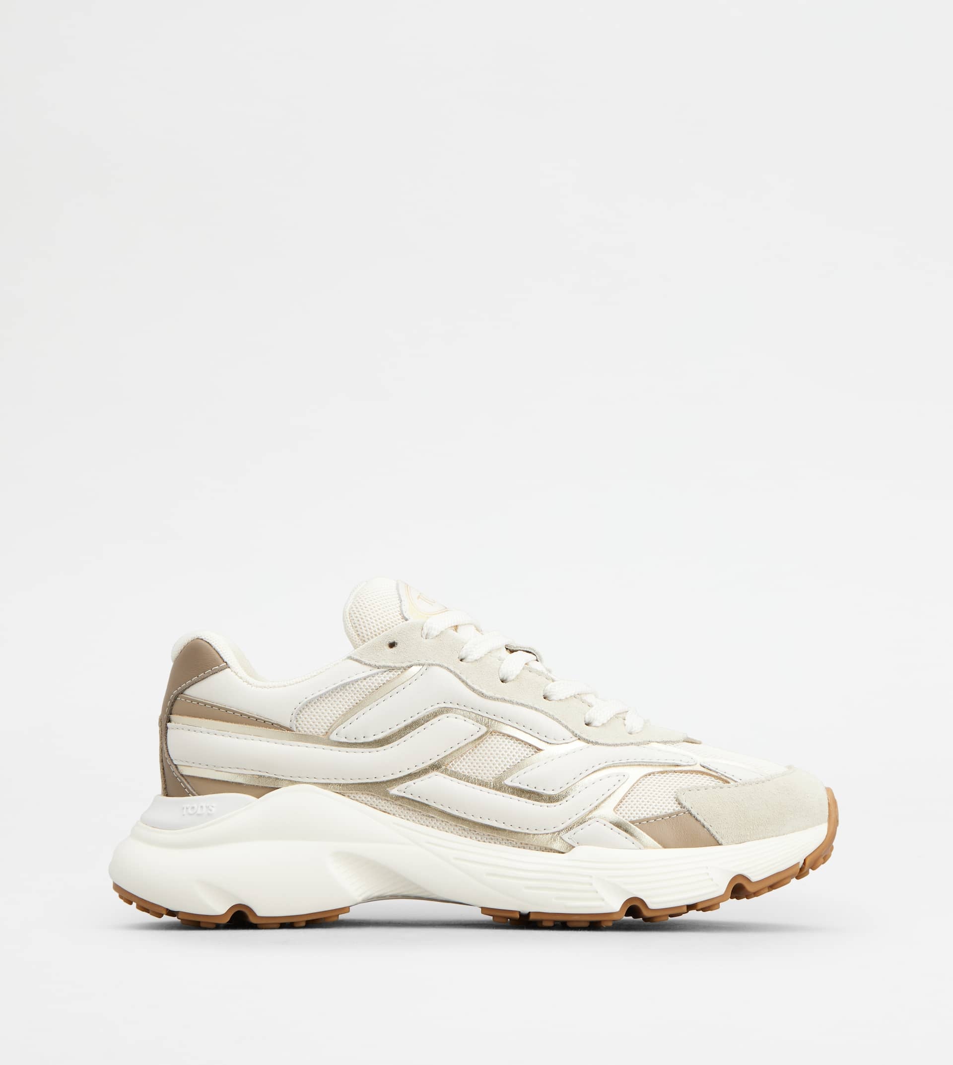 SNEAKERS IN LEATHER AND FABRIC - BEIGE, WHITE, GOLD