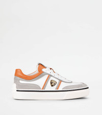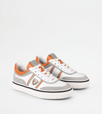 Sneakers in smooth leather with suede inserts, Tod's logo stamped on the tongue and Automobili Lamborghini logo on the side. Featuring a rubber outsole with contrasting piping, they come with the iconic rubber pebbles on the heel. An original synthesis of traditional craftsmanship and innovation, the result of a collaboration under the sign of the most exclusive Italian lifestyle. - Made in Italy - Women's Tod's Sneakers - Tod's for Automobili Lamborghini - Smooth leather upper - Suede inserts - Tod's logo stamped on the tongue - Automobili Lamborghini logo insert on the side - Rubber pebble detailing on the heel - Rubber cupsole with embossed rubber pebbles at ends