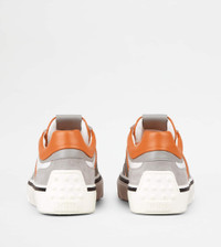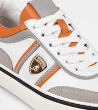 SNEAKERS IN LEATHER - GREY, ORANGE