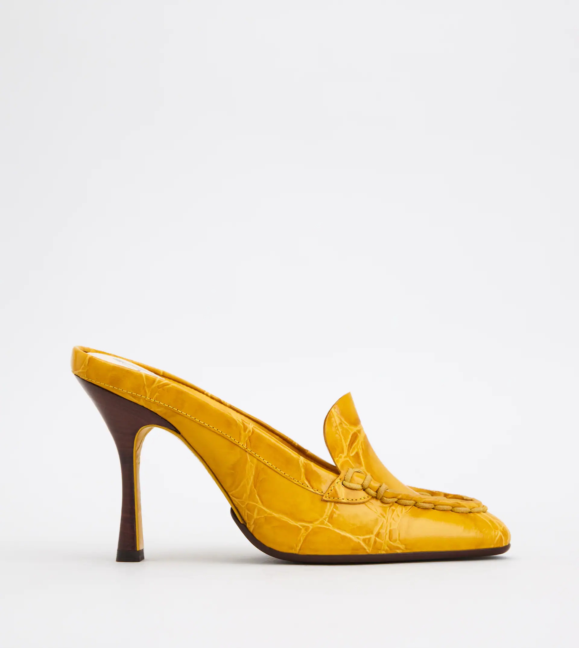 Mules in elegant crocodile printed leather, stamped Tod's monogram, exposed handmade stitching and a leather outsole. - Made in Italy - Women's Tod's Mules - Leather upper - Crocodile print - Exposed handmade stitching with waxed lace - Leather heel with rubber insert 9.5 cm - Leather outsole - Maintenance and care cards included - Branded dustbag