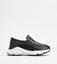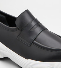 Characterized by a chunky rubber outsole, this style features a loafer upper with a classic penny bar. Crafted in calfskin leather, it is a contemporary hybrid perfect from the office to the weekend. - Made in Italy - Loafer sneakers - Calfskin leather upper - Penny bar - Soft insole - Rubber outsole - Maintenance and care cards included - Branded dustbag