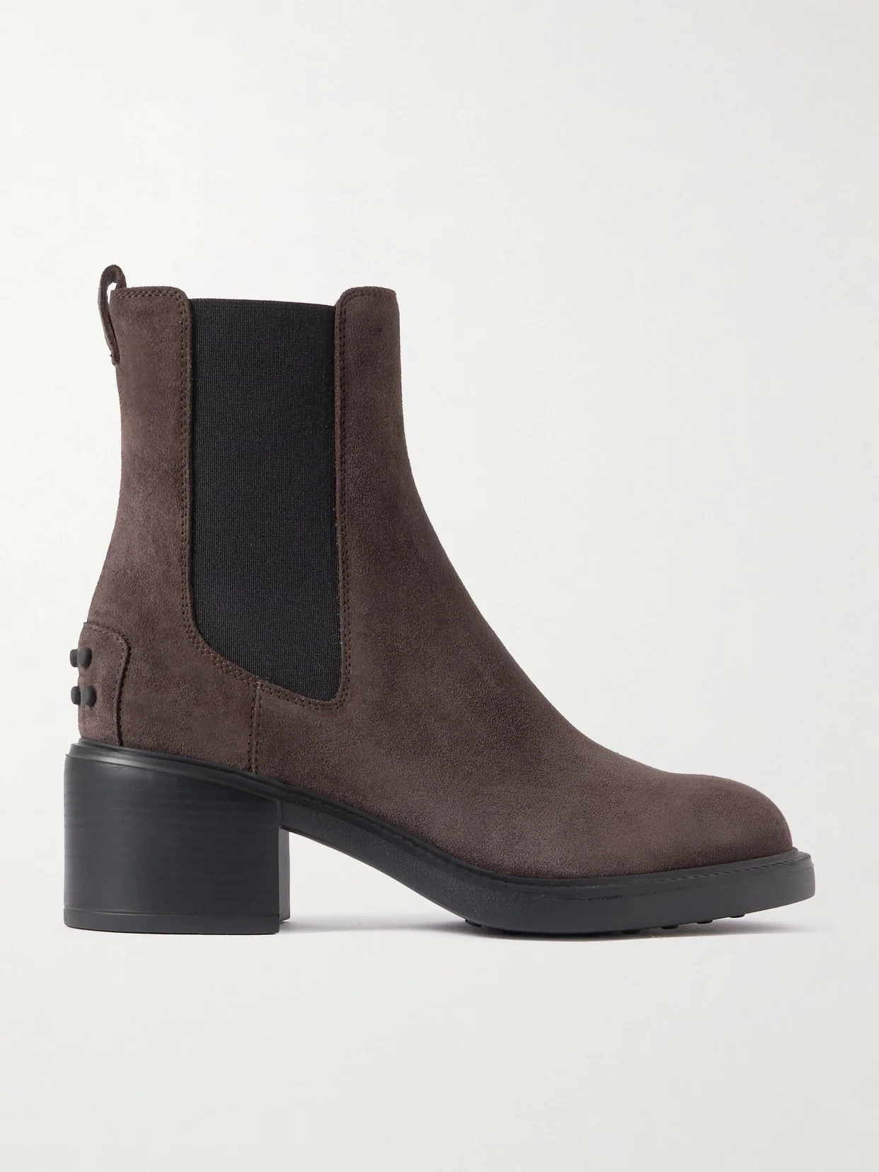 The rubber pebbles at the back of Tod's classic Chelsea boots pay tribute to the label's iconic driving shoes. They're made from soft suede with elasticated inserts and rest on rubber soles with a 60mm block heel.