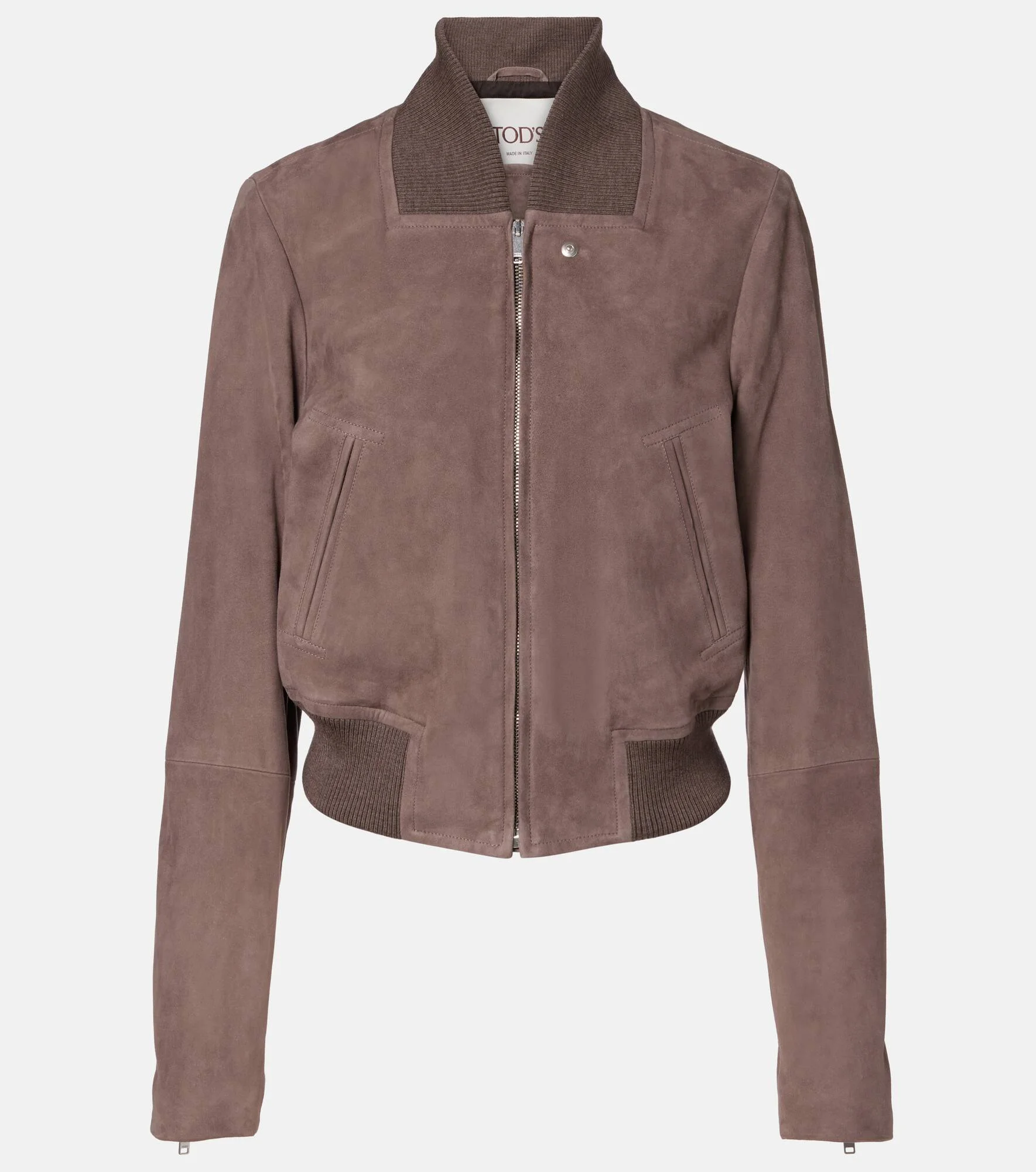 Tod's embodies the art of Italian craftsmanship with superior fabrications and timeless silhouettes that lend a sense of quiet sophistication. This jacket is a classic bomber style made from suede with tonal ribbed-knit trims. Product Details - Material: 100% lamb leather (suede) - Care instructions: specialist clean - Made in Italy - Designer color name: Teak - Item color: brown - Lining: 100% cotton - Sleeve lining: 100% viscose - Trim: 85% wool, 13% polyamide, 2% elastane - Closure: zipped front - Pockets: welt pockets - Cuff: zipped - Hem: ribbed - Item number: P01091616 Size & Fit - True to size - Straight fit - Elasticated hem - Non-stretchy fabric - Slightly cropped - The model seen in the picture is 178cm-5'10" and wearing a size IT 40