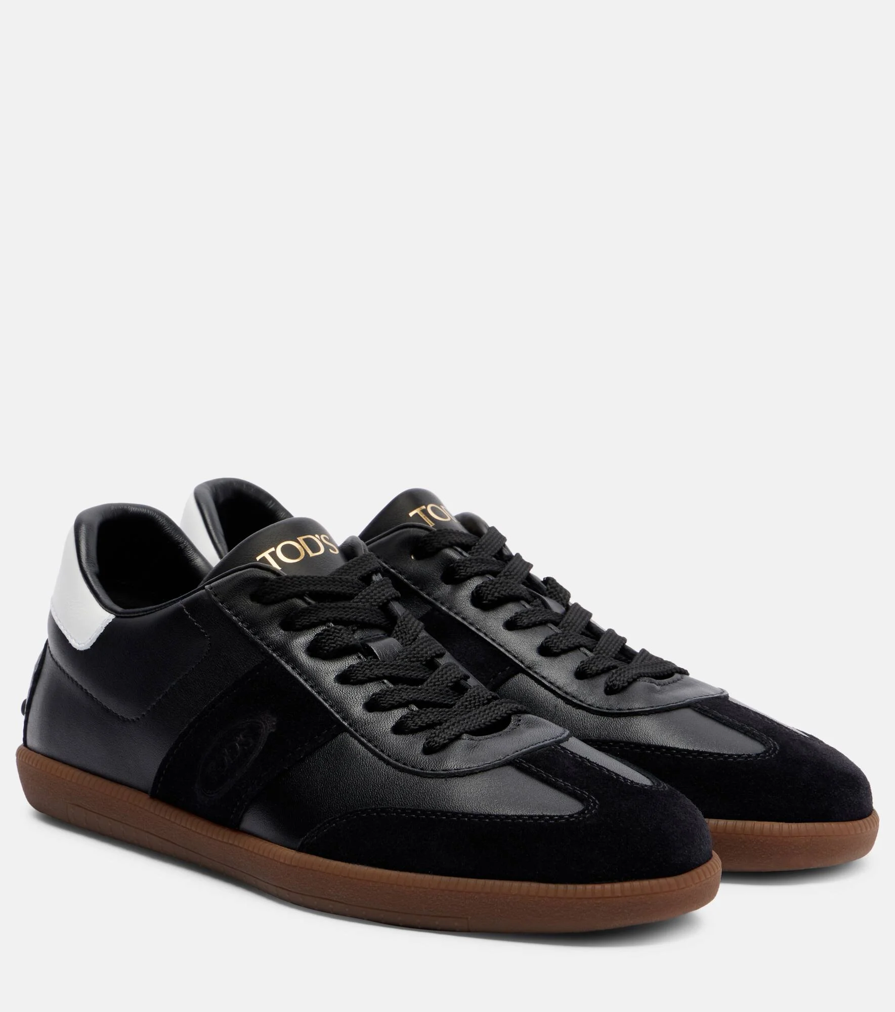 Tod's embodies the art of Italian craftsmanship with superior fabrications and timeless silhouettes. These low-top sneakers are crafted from supple leather with suede trims and the brand's signature Gommino detailing at the backs. Product Details - Upper: leather, leather (suede) - Lining: leather - Sole: leather insole, rubber sole - Color: black - Toe shape: round toe - Made in Italy - Includes: shoe box, dust bag - Designer color name: Reo B999 + Jus B999 + Jus B001 - Item color: black, white - Closure: lace-up - Item number: P01141774 Size & Fit - True to size - European sizes