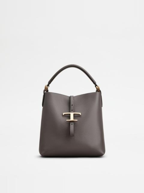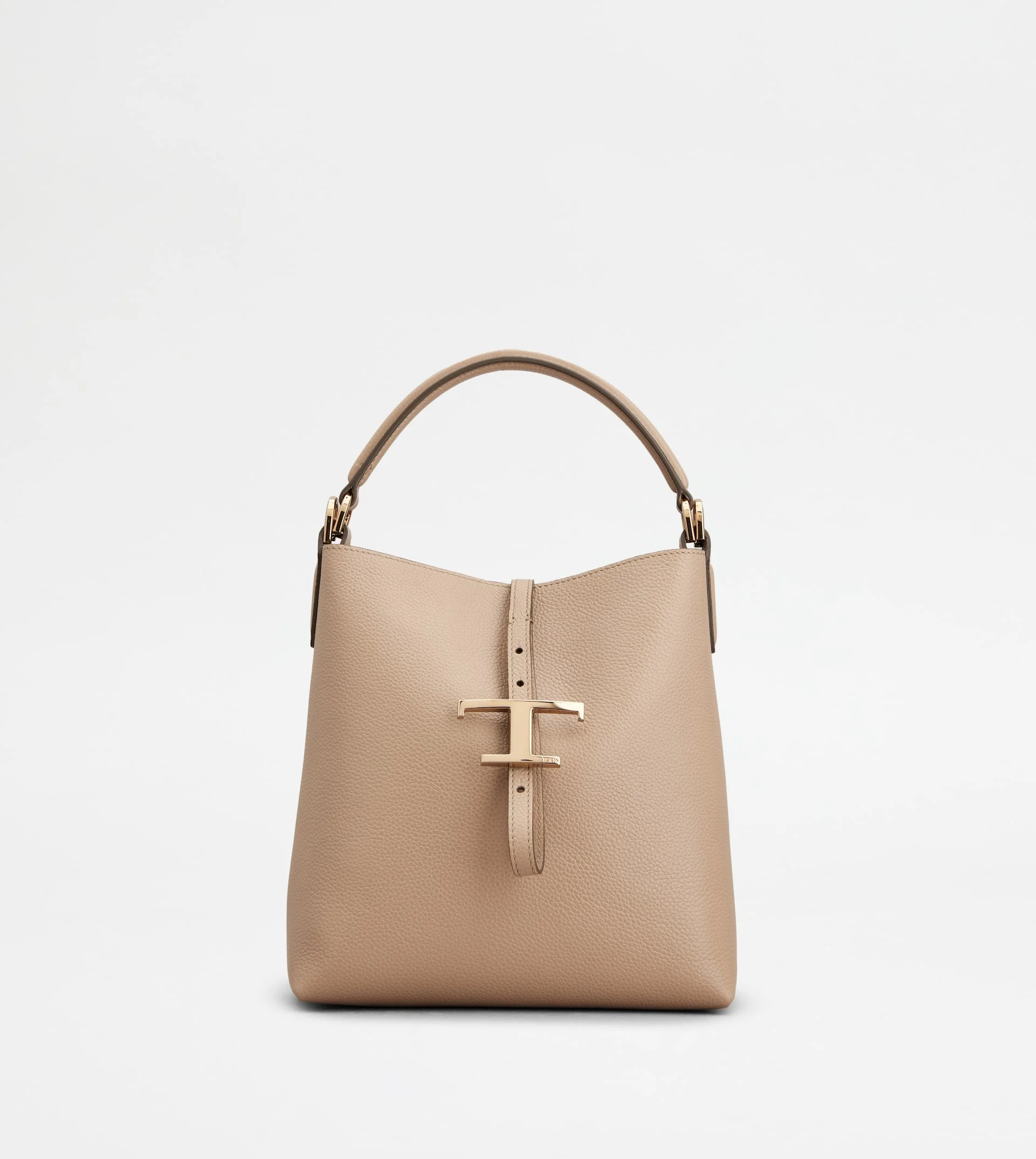 T TIMELESS BUCKET BAG IN LEATHER MINI - BEIGE