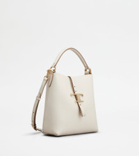 T TIMELESS BUCKET BAG IN LEATHER MINI - WHITE
