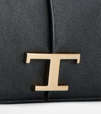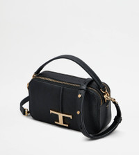 The timeless elegance of the T Timeless line is declined in a camera bag with a compact and rounded shape. Featuring the iconic branded metal accessory, it can be carried by hand or crossbody, thanks to its removable shoulder strap. Crafted in calfskin leather, this versatile creation comes with a double zipped compartment and a practical back pocket. - Dimensions: L 68.5 ins x H 4.7 ins x D 2.8 ins - Handle: height (drop) 2.6 ins - Adjustable and removable shoulder strap: height (drop from central hole) 18.5 ins, length max 43.3 ins - Made in Italy - Camera bag in leather - Item crafted in calfskin leather - Branded metal T Timeless accessory - Flat pocket on the back - 2 zipped compartments - Cotton blend linen interior - Maintenance and care cards included - Branded dustbag