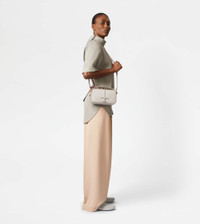The timeless elegance of the T Timeless line is declined in a camera bag with a compact and rounded shape. Featuring the iconic accessory in a tone-on-tone version, it can be carried by hand or crossbody, thanks to its removable shoulder strap. Crafted in calfskin leather, this versatile creation comes with a double zipped compartment and a practical back pocket. - Dimensions: L 68.5 ins x H 4.7 ins x D 2.8 ins - Handle: height (drop) 2.6 ins - Adjustable and removable shoulder strap: height (drop from central hole) 18.5 ins, length max 43.3 ins - Made in Italy - Camera bag in leather - Item crafted in calfskin leather - Lacquered metal T Timeless accessory - Flat pocket on the back - 2 zipped compartments - Cotton blend linen interior - Maintenance and care cards included - Branded dustbag
