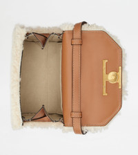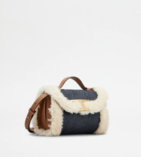 T TIMELESS CROSSBODY BAG IN DENIM AND SHEEPSKIN MICRO - OFF WHITE, BLUE