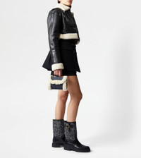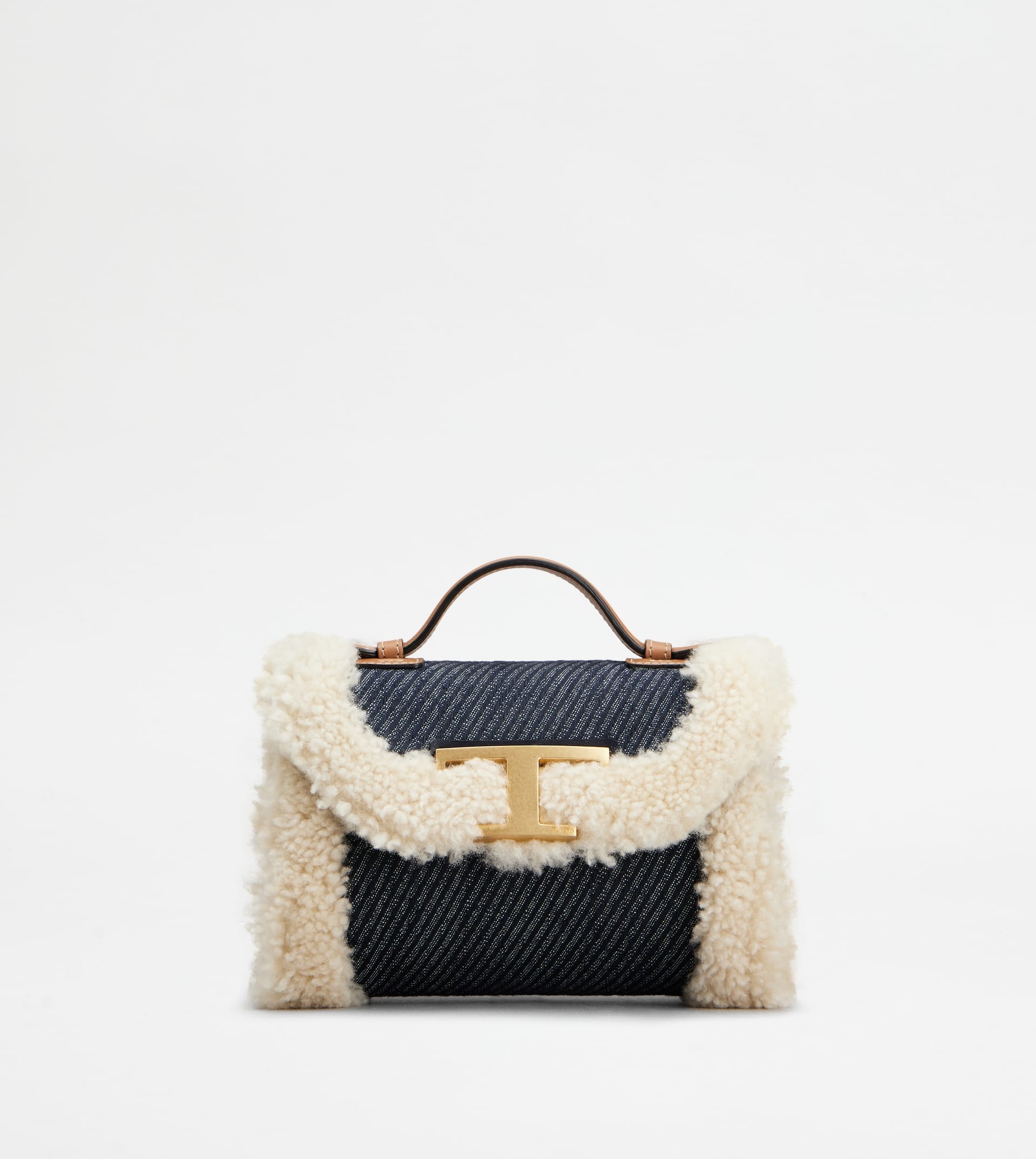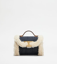 Micro bag with rounded shape, crafted in woven denim with soft sheepskin piping. Characterized by the branded metal T Timeless accessory, it comes with a handle strap and an adjustable and removable shoulder strap in leather. - Dimensions: L 7.1 ins x H 4.7 ins x D 3.5 ins - Handle: height (drop) 1.6 ins - Adjustable and removable shoulder bag: height (drop) 23.6 ins, length 59.4 ins max - Made in Italy - Women's jeans micro bag - Item crafted in cotton blend fabric - Sheepskin and leather inserts - Branded metal T Timeless accessory - Flap and magnet closure - Internal pocket - Maintenance and care cards included - Branded dustbag