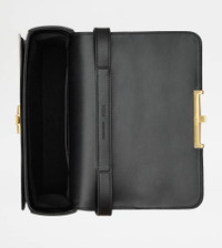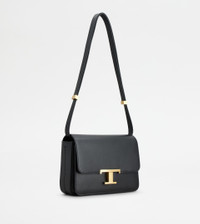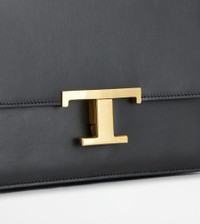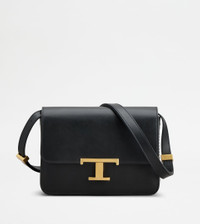 With an essential design, this mini flap bag is characterized by a pressure T Timeless buckle. Crafted in refined calfskin leather, it comes with a practical front pocket concealed by the flap. The shoulder strap is adjustable by branded metal sliders, while a saddlery-style stitching peaks at the sides in the distinctive T-stitching. A unisex model that fully combines traditional craftsmanship and contemporary elegance. - Dimensions: L 9.4 ins x H 7.1 ins x D 3.9 ins - Adjustable shoulder strap: height (drop) from 13 to 22.4 ins - Made in Italy - Bag in leather - Item crafted in calfskin leather - Branded metal T Timeless buckle - Snap closure - Front pocket - Internal pocket - Maintenance and care cards included - Branded dustbag