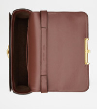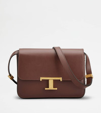With an essential design, this mini flap bag is characterized by a pressure T Timeless buckle. Crafted in refined calfskin leather, it comes with a practical front pocket concealed by the flap. The shoulder strap is adjustable by branded metal sliders, while a saddlery-style stitching peaks at the sides in the distinctive T-stitching. A unisex model that fully combines traditional craftsmanship and contemporary elegance. - Dimensions: L 9.4 ins x H 7.1 ins x D 3.9 ins - Adjustable shoulder strap: height (drop) from 13 to 22.4 ins - Made in Italy - Bag in leather - Item crafted in calfskin leather - Branded metal T Timeless buckle - Snap closure - Front pocket - Internal pocket - Maintenance and care cards included - Branded dustbag