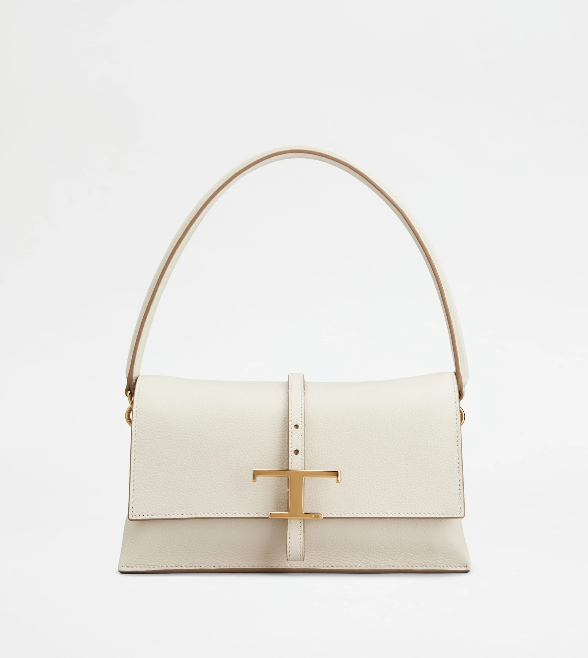 Crafted in calfskin leather, this mini bag comes with the branded metal T Timeless accessory. Featuring a fixed handle and a removable shoulder strap, it comes with a suede interior, divided into three practical compartments. Complemented by a back pocket, it is a model with a soft and deconstructed shape, perfect for the everyday look. - Dimensions: L 10.4 ins x H 6.3ins x D 2.4 ins - Handle: height (drop) 6.3 ins - Adjustable and removable shoulder strap: height (drop from the central hole) 19.7 ins, length max 47 ins - Made in Italy - Shoulder bag in leather - Item crafted in calfskin leather - Branded metal T Timeless accessory - Back pocket - Magnet closure - Suede interior - 3 compartments - Pocket with cardslots - Maintenance and care cards included - Branded dustbag