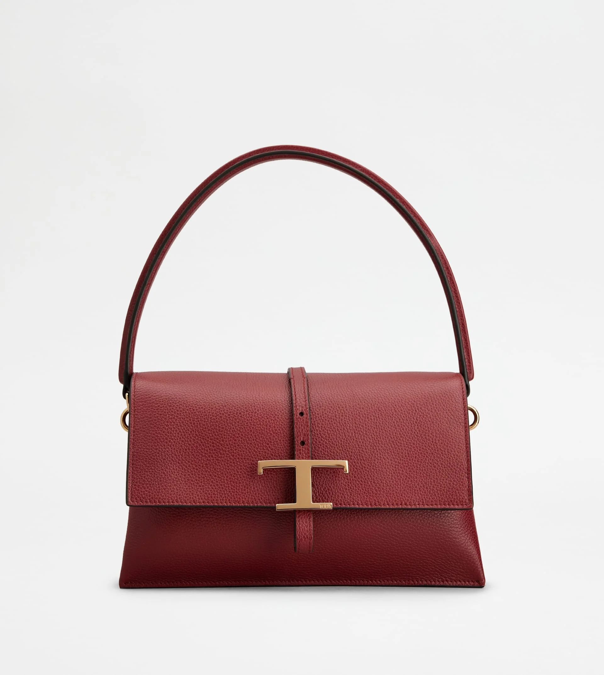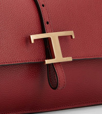 Crafted in calfskin leather, this mini bag comes with the branded metal T Timeless accessory. Featuring a fixed handle and a removable shoulder strap, it comes with a suede interior, divided into three practical compartments. Complemented by a back pocket, it is a model with a soft and deconstructed shape, perfect for the everyday look. - Dimensions: L 10.4 ins x H 6.3ins x D 2.4 ins - Handle: height 6.3 ins - Adjustable and removable shoulder strap: height (drop from the central hole) 19.7 ins, length max 47 ins - Made in Italy - Shoulder bag in leather - Item crafted in calfskin leather - Branded metal T Timeless accessory - Back pocket - Magnet closure - Suede interior - 3 compartments - Pocket with cardslots - Maintenance and care cards included - Branded dustbag