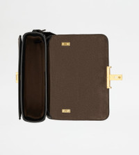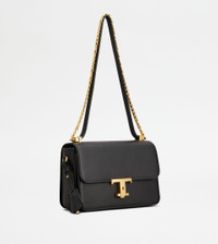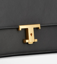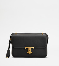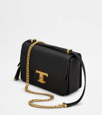 Crafted in soft calfskin leather, this mini bag with a linear design is characterized by the T Timeless lock buckle. The elegant metal and leather strap can be worn crossbody, or as a doubled handle. The flap concealed an external flap pocket. The removable side charm contains the key to lock the snap closure of the buckle. Versatile and sophisticated, the bag perfectly accompanies both daytime and evening outfits. - Dimensions: L 8.7 ins x H 5.7 ins x H 3.1 ins - Versatile shoulder strap: height (drop) 20.9 ins - Made in Italy - Crossbody bag in leather - Item crafted in calfskin leather - Metal T Timeless lock buckle - Snap or key closure (2 keys included) - Removable charm - Concealed external pocket - Maintenance and care cards included - Branded dustbag