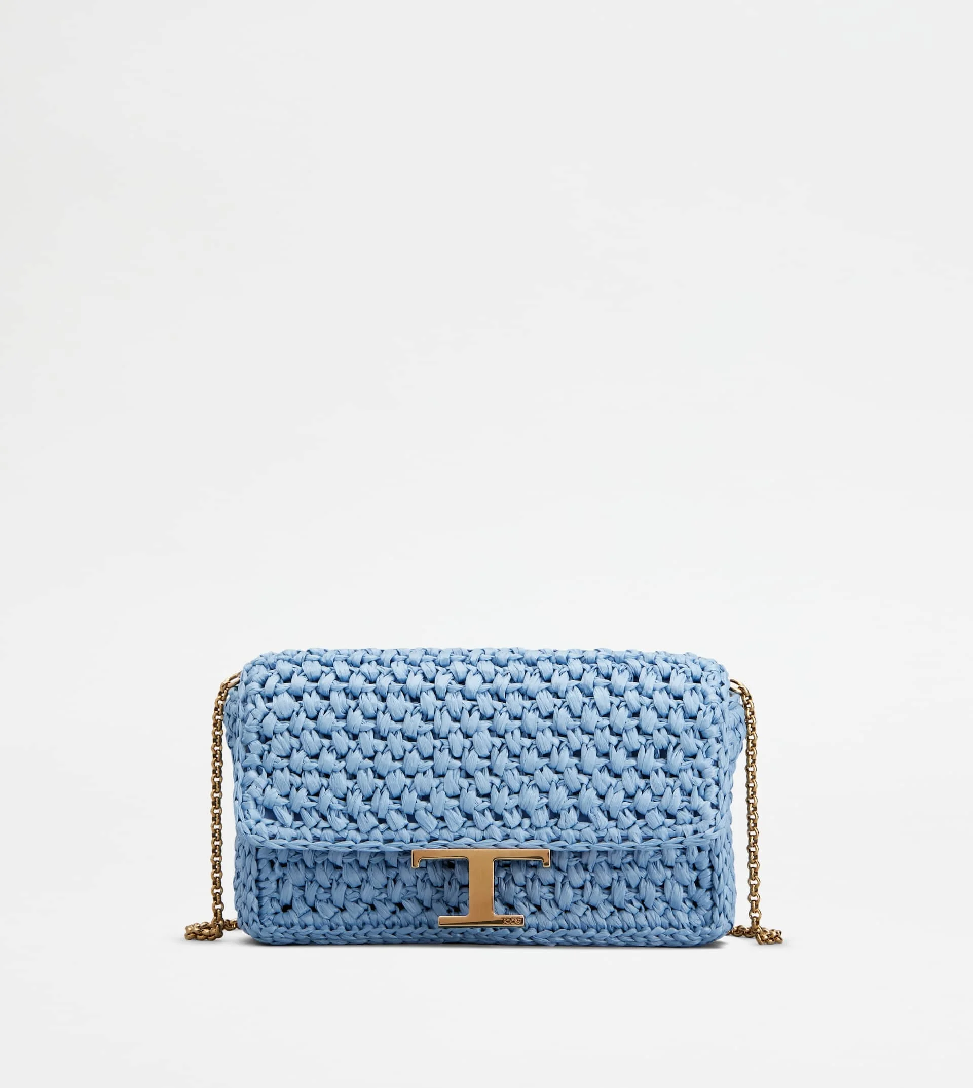 T TIMELESS FLAP BAG IN RAFFIA MICRO - LIGHT BLUE