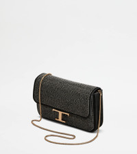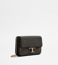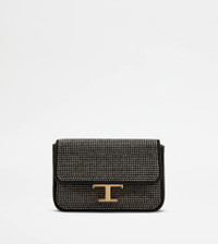 Crafted in suede, this micro bag comes with shiny rhinestones and the iconic T Timeless accessory. Featuring a removable metal shoulder strap, it can be worn crossbody or carried by hand as a clutch bag. Elegant and versatile, perfect from day to evening. - Dimensions: L 8.3 ins x H 4.9 ins x D 2.2 ins - Removable shoulder strap: height (drop from the central hole) 21.3 ins - Made in Italy - Crossbody bag with rhinestones - Item crafted in goatskin suede - Branded metal T Timeless accessory - Side T-stitching - Magnetic button closure - Internal pocket - Maintenance and care cards included - Branded dustbag