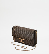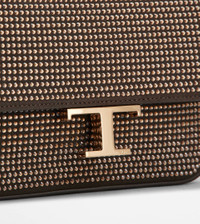 Crafted in suede, this micro bag comes with shiny rhinestones and the iconic T Timeless accessory. Featuring a removable metal shoulder strap, it can be worn crossbody or carried by hand as a clutch bag. Elegant and versatile, perfect from day to evening. - Dimensions: L 8.3 ins x H 4.9 ins x D 2.2 ins - Removable shoulder strap: height (drop from the central hole) 21.3 ins - Made in Italy - Crossbody bag with rhinestones - Item crafted in goatskin suede - Branded metal T Timeless accessory - Side T-stitching - Magnetic button closure - Internal pocket - Maintenance and care cards included - Branded dustbag