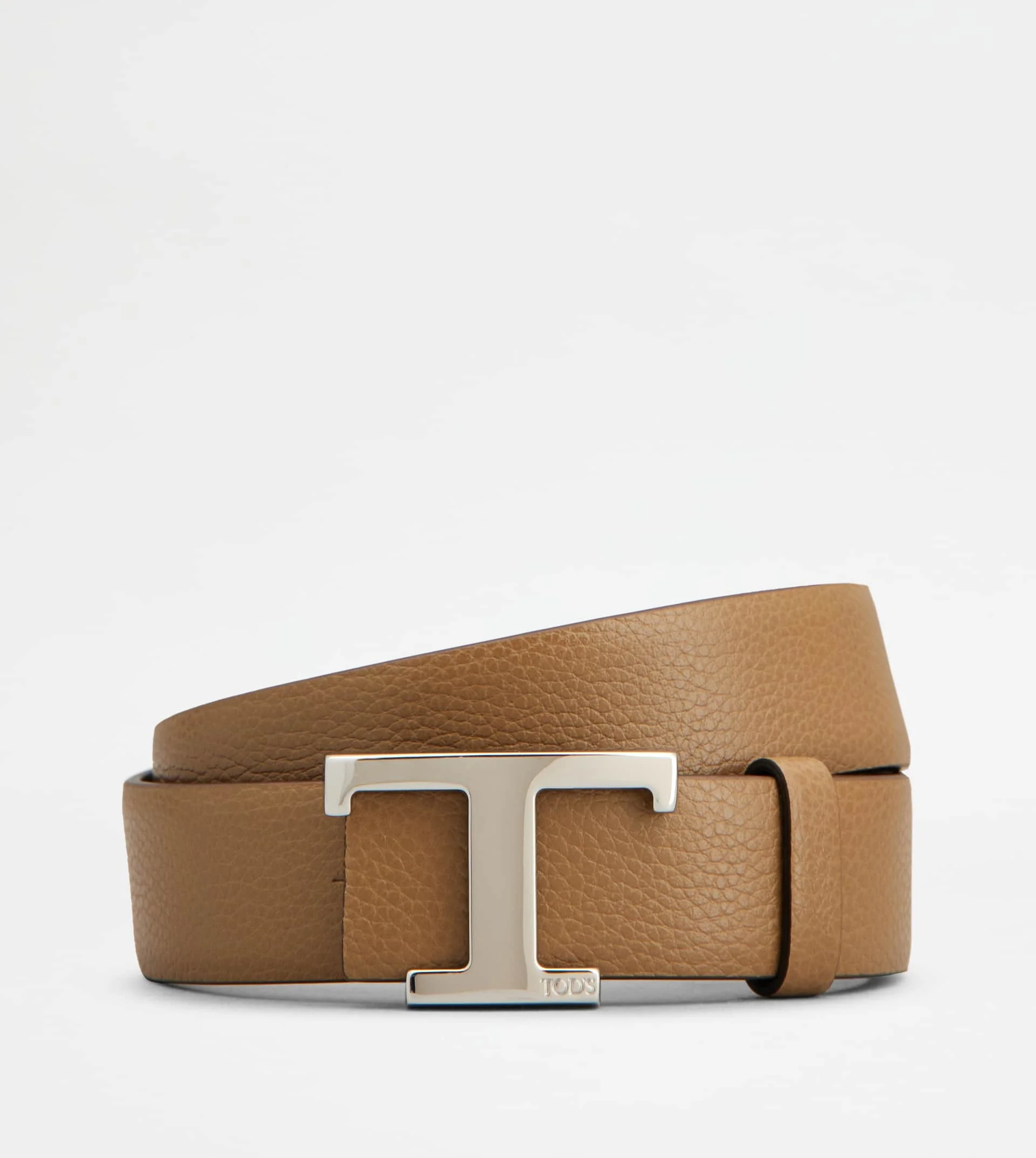 T TIMELESS REVERSIBLE BELT IN LEATHER - BROWN