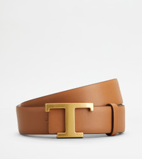 T TIMELESS REVERSIBLE BELT IN LEATHER - BROWN, BEIGE