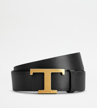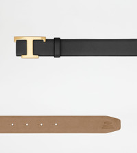 T TIMELESS REVERSIBLE BELT IN LEATHER - BLACK