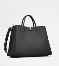 T TIMELESS SHOPPING BAG IN LEATHER MEDIUM - BLACK