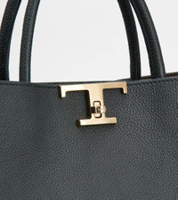 Crafted in calfskin leather, this shopping bag is characterized by three practical compartments. Closed with magnets, it comes with the T Timeless turn-lock buckle on the front part. Featuring two tubular handles, it comes with an adjustable and removable shoulder strap, for a versatile use. - Dimensions: L 15.4 ins x H 10.2 ins x D 5.9 ins - Handles: height (drop) 3.9 ins - Adjustable and removable shoulder strap: height (drop) 19.7 ins, length max 45.3 ins - Made in Italy - Shopping bag in leather - Item crafted in calfskin leather - Branded metal T Timeless turn-lock buckle - Magnet closure - 3 compartments - Internal pocket - Maintenance and care cards included - Branded dustbag