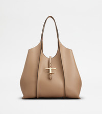 T TIMELESS SHOPPING BAG IN LEATHER MEDIUM - BEIGE