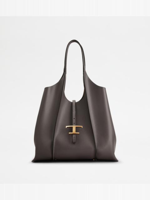 Shopping bag with flowing lines, crafted in soft calfskin leather with ribbing, branded metal T Timeless pendant accessory and double handles. Wide internal compartment with removable pouch. - Dimensions: L 18.5 ins x H 11.4 ins x D 5.5 ins - Double handles - Made in Italy - Women's Tod's Shopping Bag - Item crafted in calfskin leather - Branded metal T Timeless pendant accessory - Strap and snap closure - Removable zipped pouch - Maintenance and care cards included - Branded dustbag