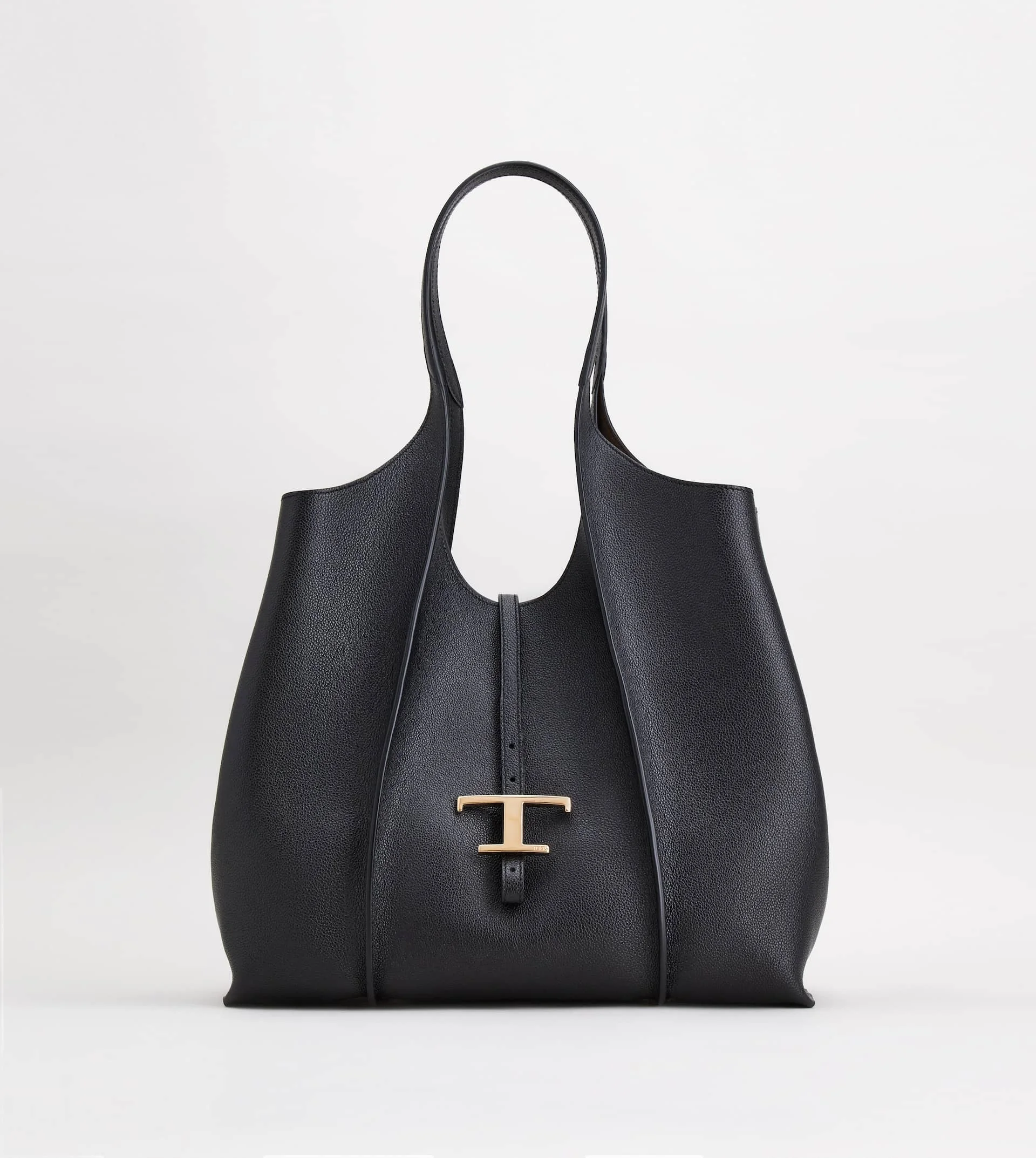 Shopping bag with flowing lines, crafted in elegant hammered leather with ribbing, branded metal T Timeless pendant accessory and double handles. Wide internal compartment with a removable pouch. - Dimensions: 18.5 x 11.4 x 5.5 ins - Double handles - Made in Italy - Women's Tod's Shopping Bag - Item crafted in leather - Branded metal T Timeless pendant accessory - Closure with strap and snap button - Removable zipped pouch - Maintenance and care cards included - Branded dustbag